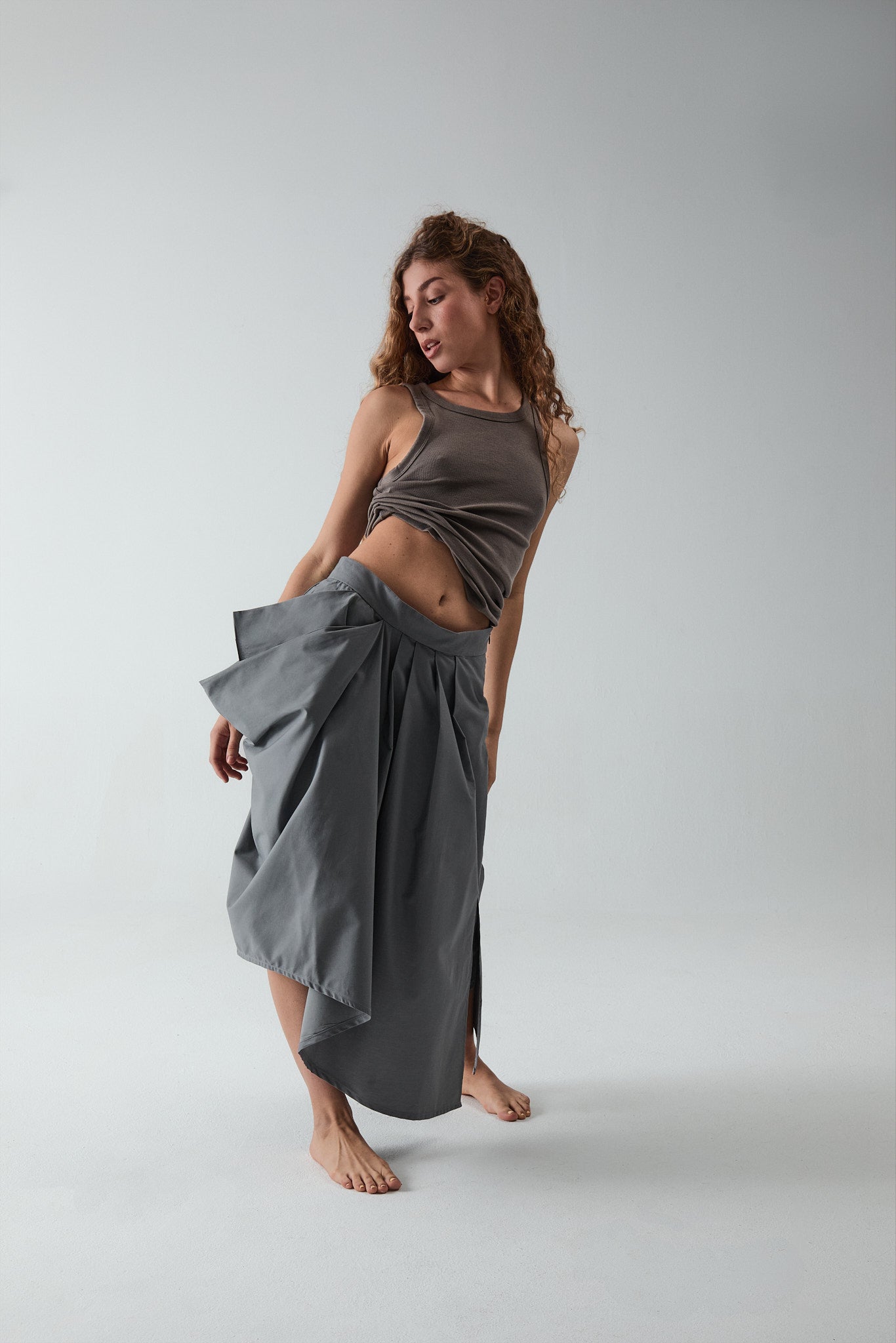 DISCOVER OUR ASYMMETRICAL LONG SKIRT, A GARMENT THAT FLOWS GRACEFULLY