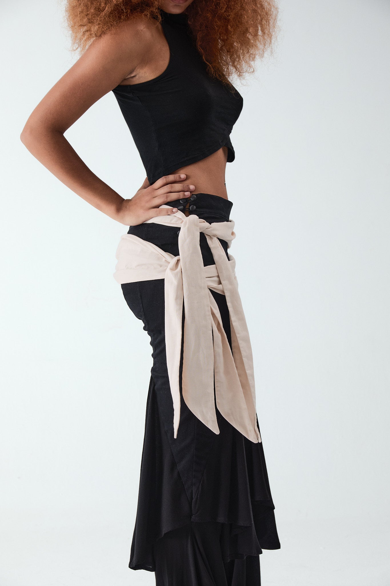 -SCARF-LIKE FABRIC STRIPS TIED AT THE HIP