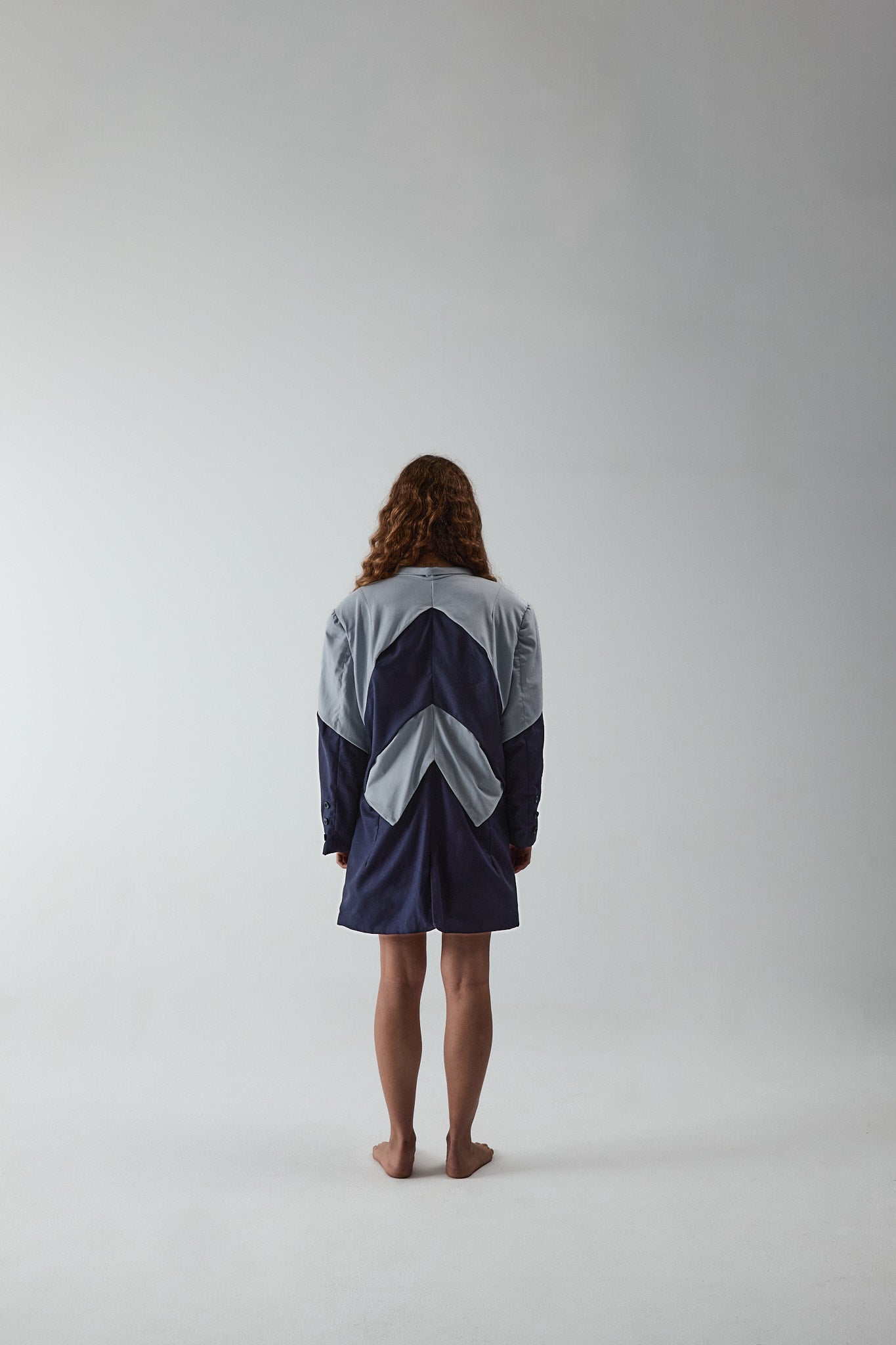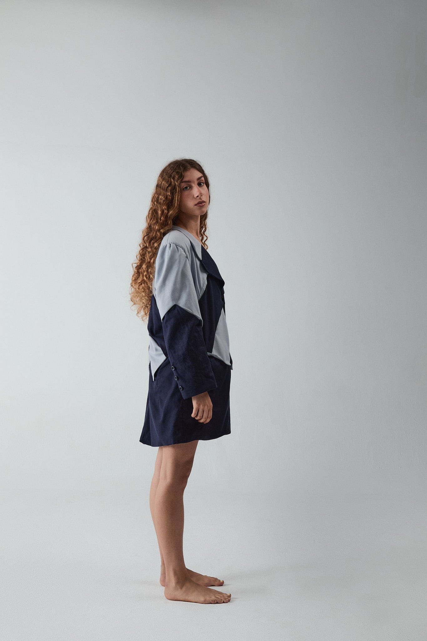THIS OVERSIZED BLAZER FEATURES CONTRASTING COLORS THAT ENHANCE ITS MODERN DESIGN.