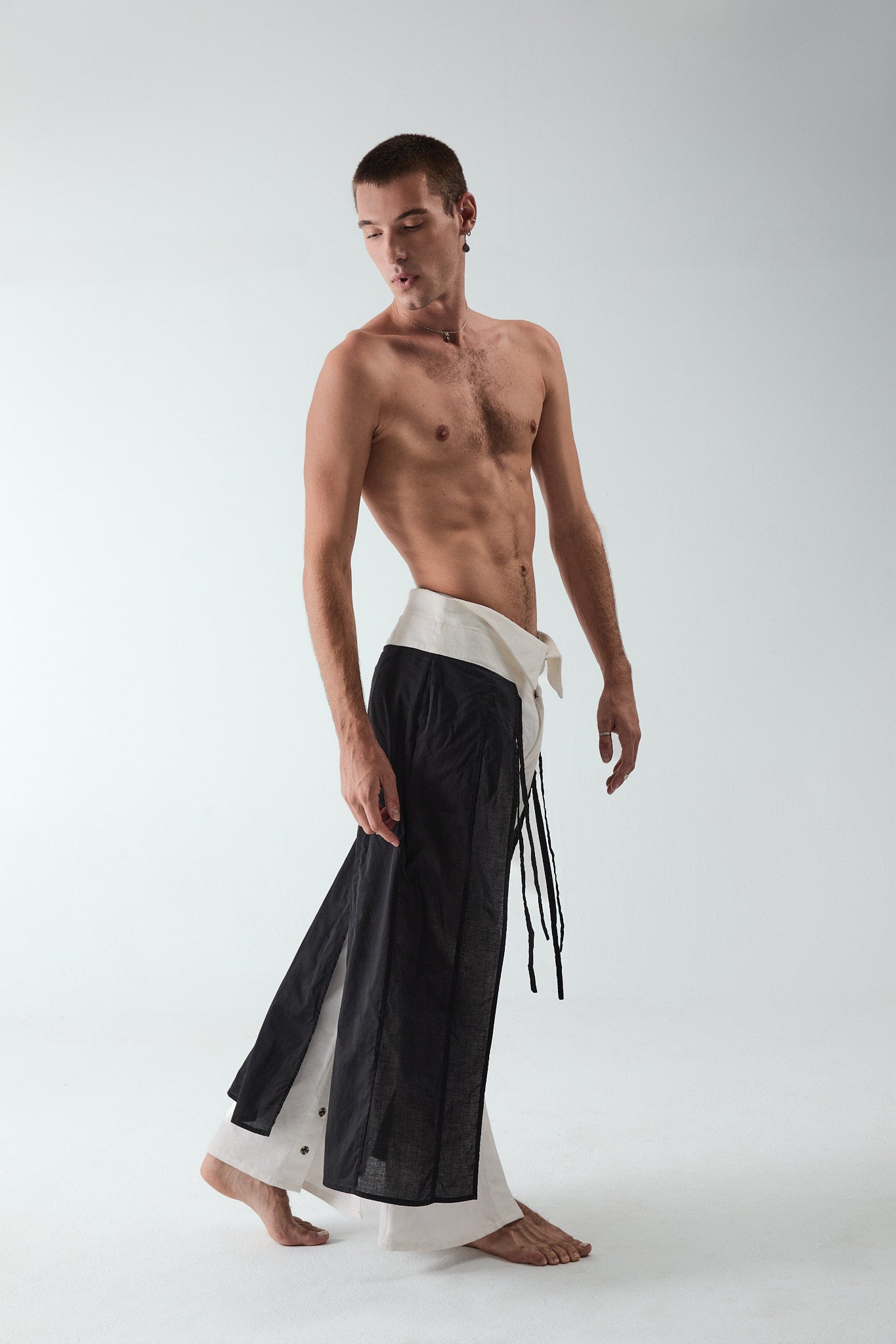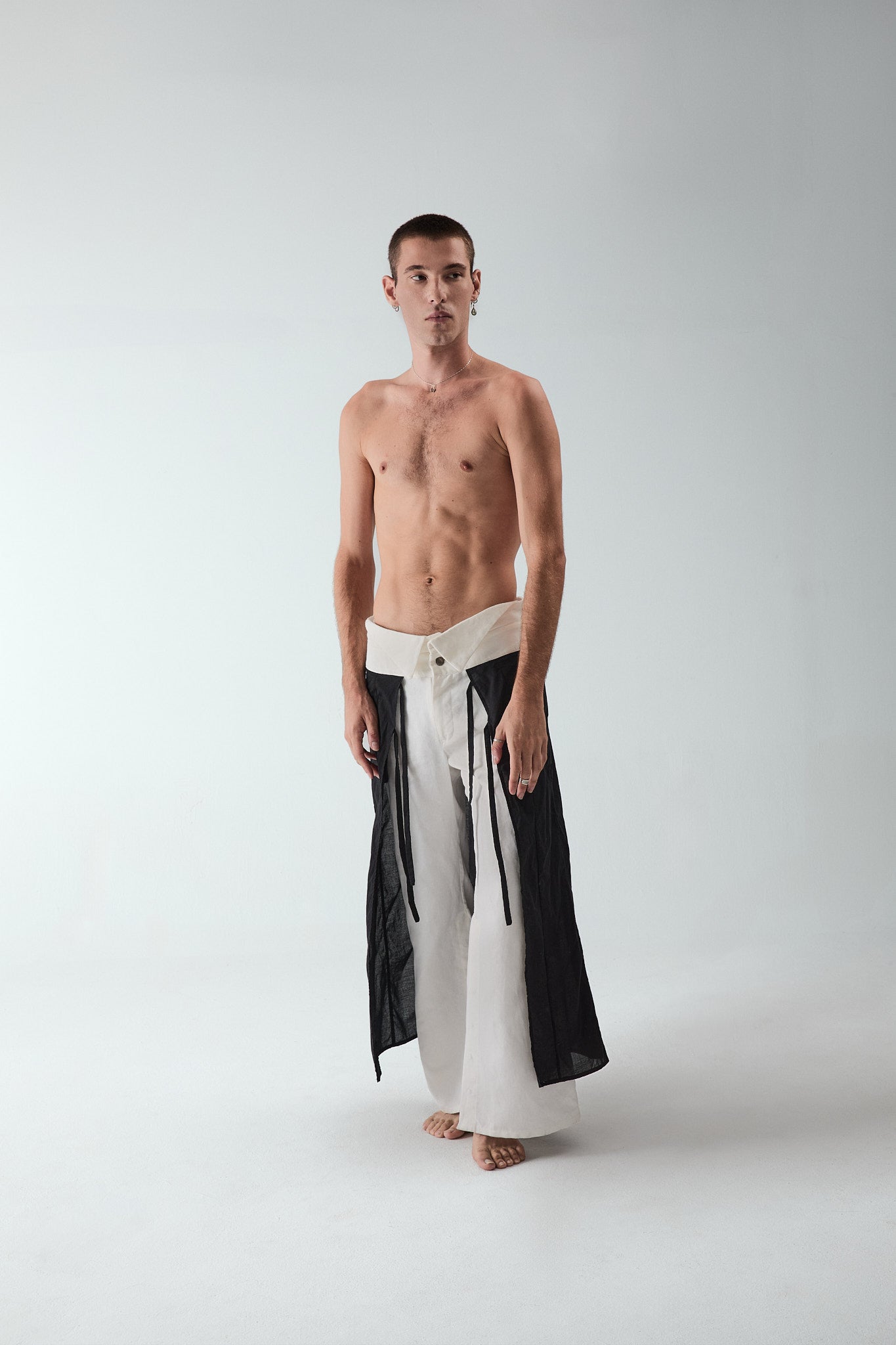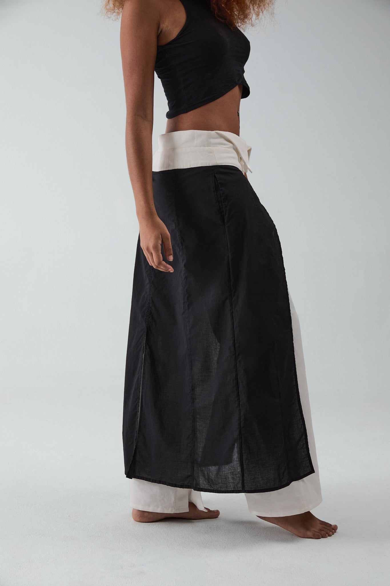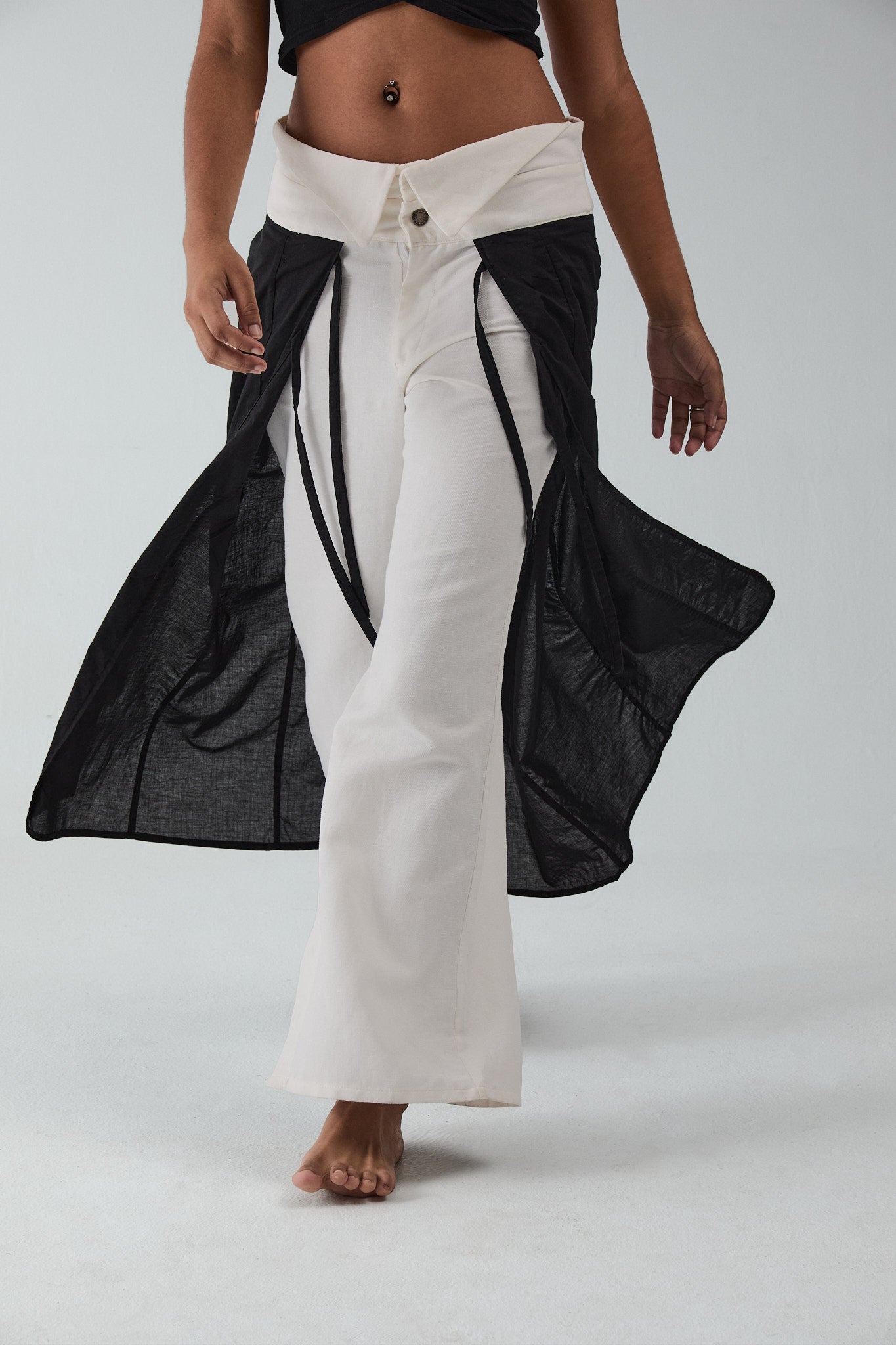 OUR PANTS WITH AN OVERSKIRT MAKE A STYLISH STATEMENT IN MOTION