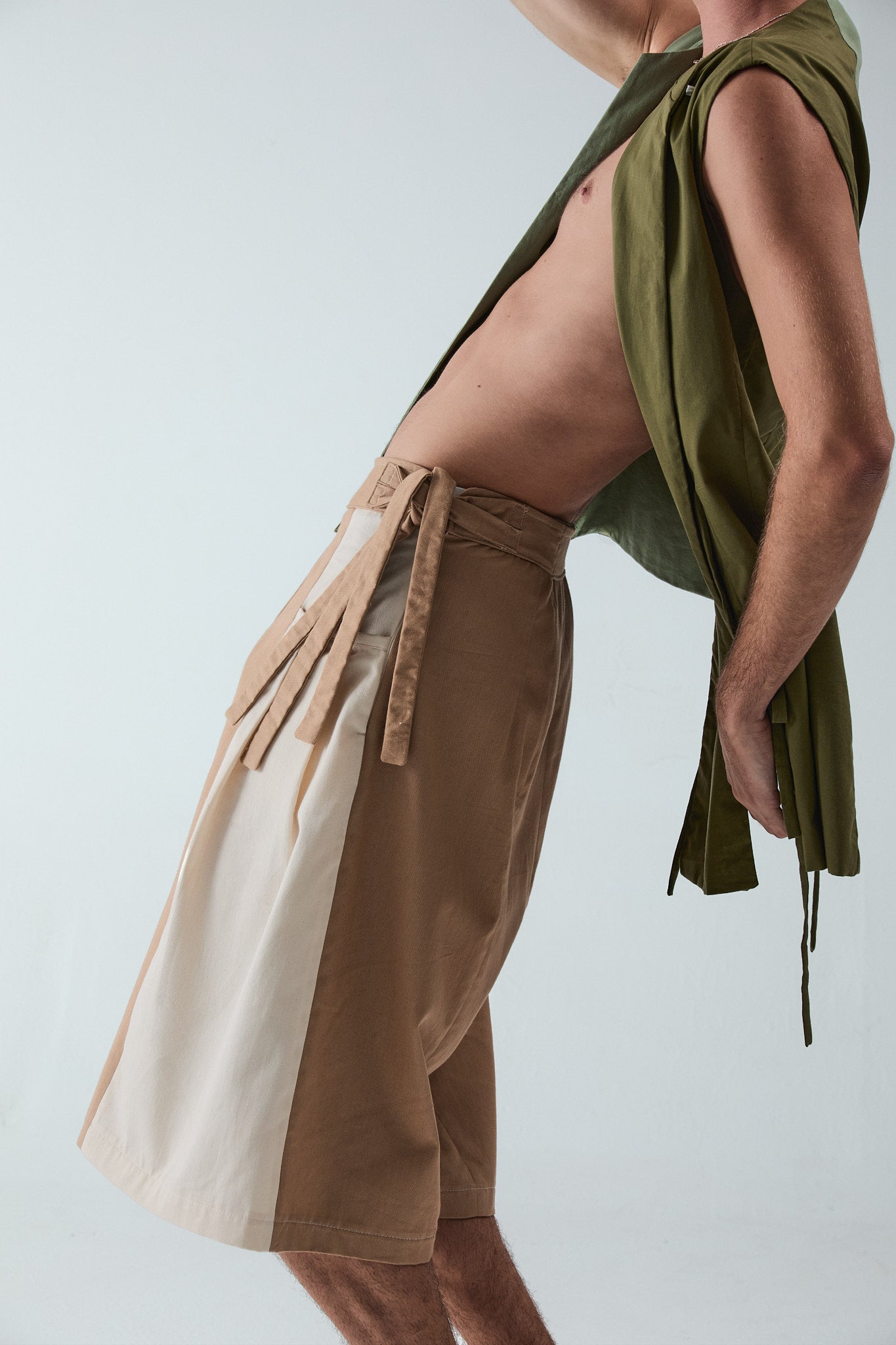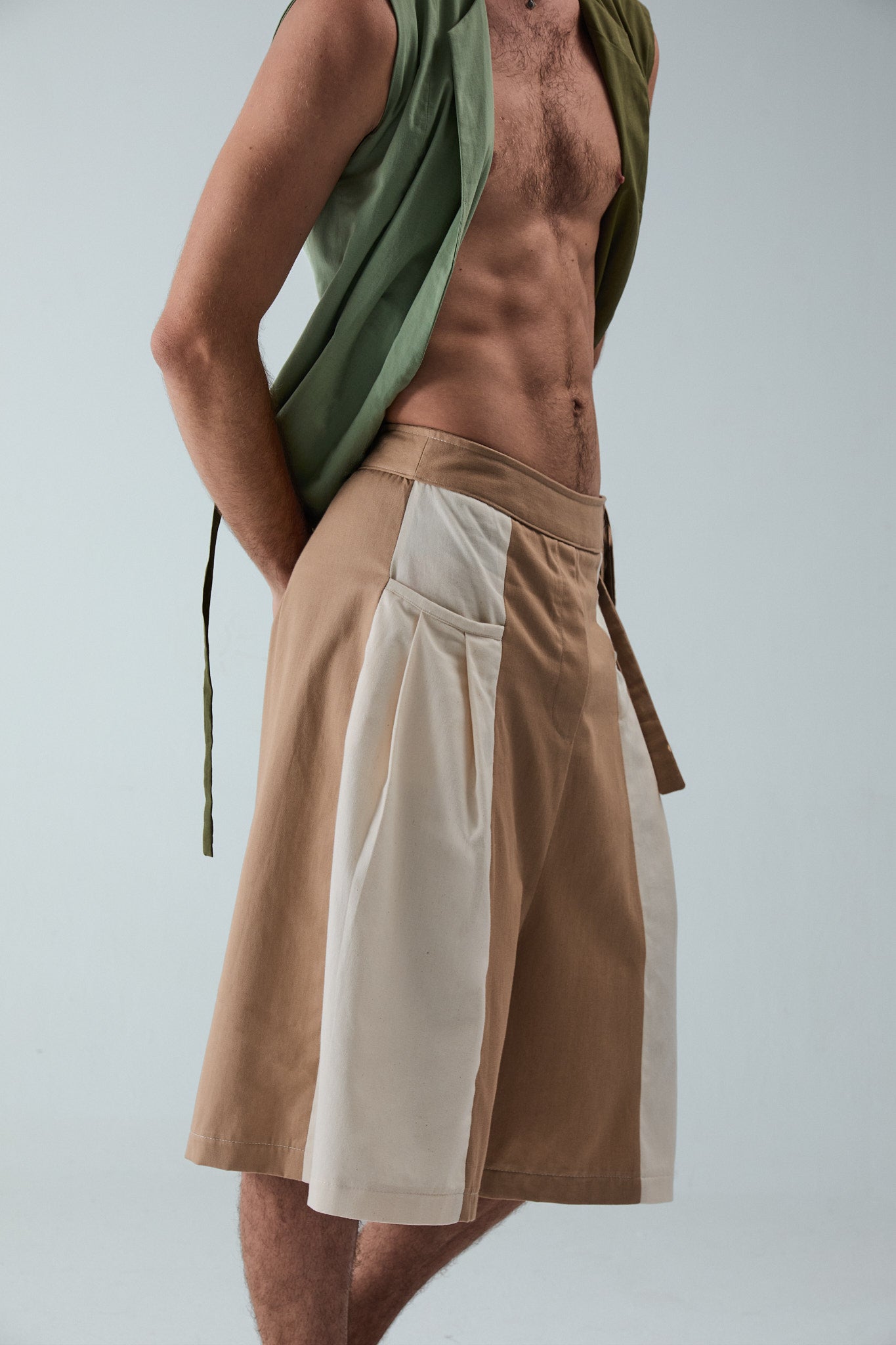 #010 - Wide-Leg Bicolor Bermuda Shorts